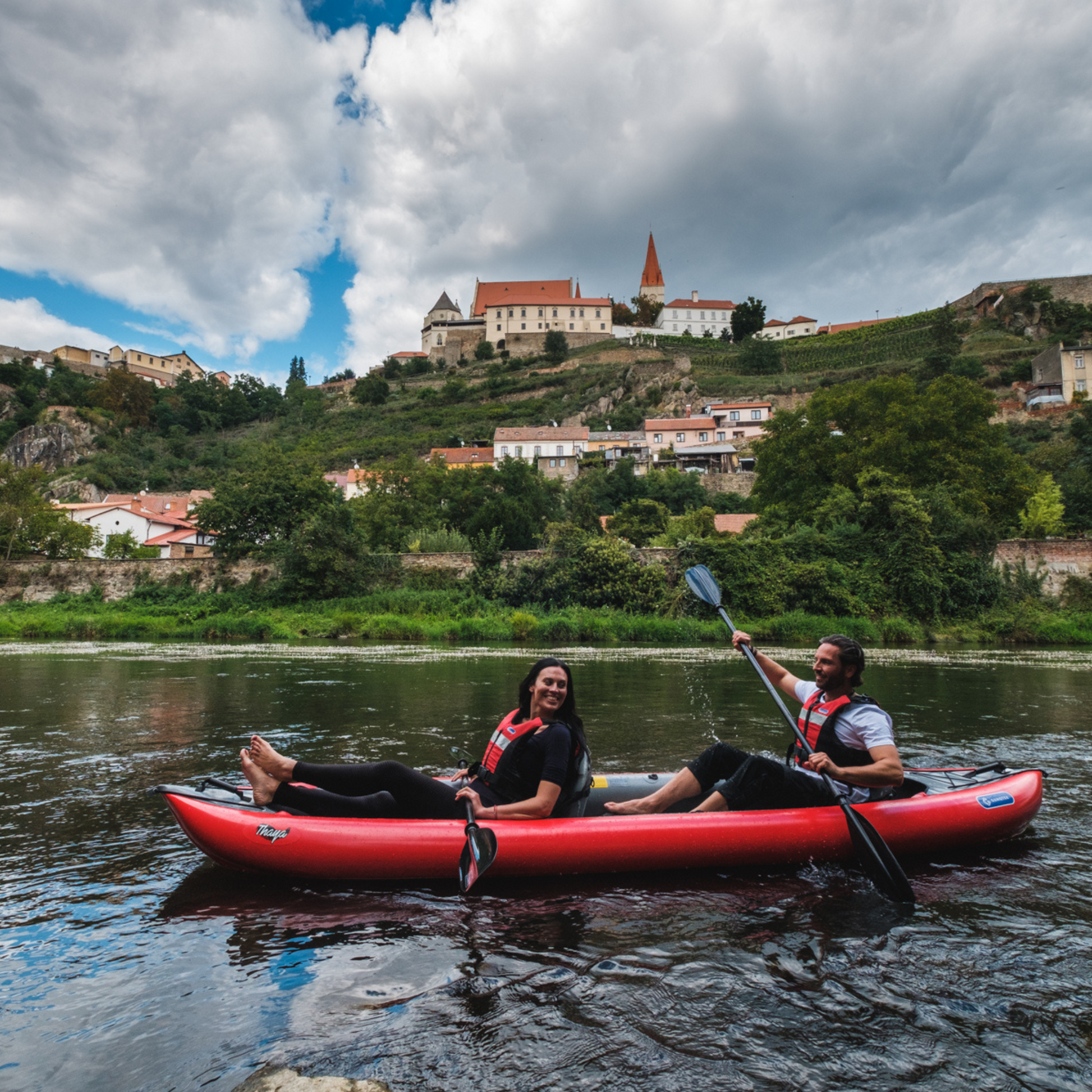 Thaya kayaks are low-weight and pack up easily into a travel bag. It is suitable for recreation on lakes and rivers to White Water 2. An additional front deck (optional) protects against overflowing of water through the tip, thus increasing user comfort when paddling in wetter conditions. It can be used for 1, 2 adults or 2 adults + 1 child.
